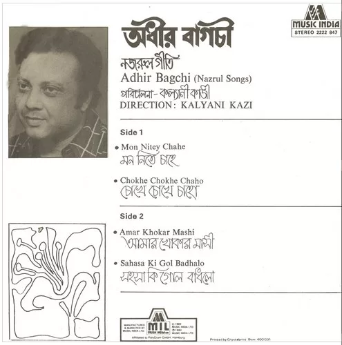 Adhir Bagchi – Nazrul Songs – 2222 847 – Reprinted EP Cover Only