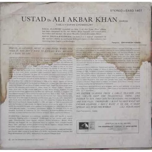Tag: Ali Akbar Khan ( Sarod) - EASD 1407 - HMV Colour Label - LP Record