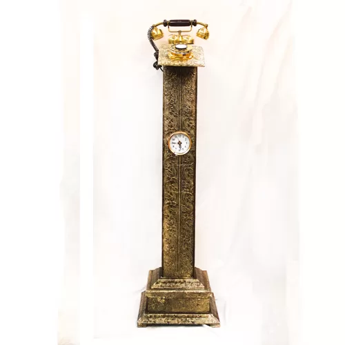 Antique Brass Telephone with Ornate Stand & Clock – Ornate