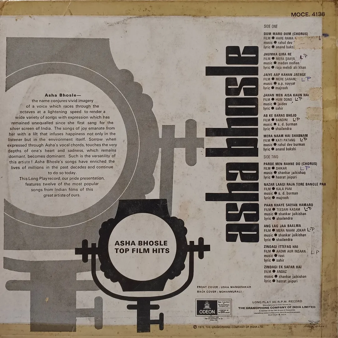 | Asha Bhosle – Top Film Hits – MOCE 4136 – LP Record | |