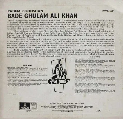| Title | Bade Ghulam Ali Khan – Padma Bhooshan – MOAE 5004 |