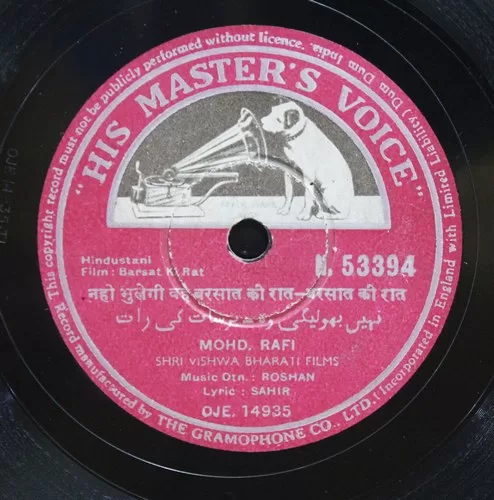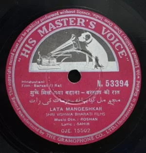 Tags: 78 RPM Shellac Record 10, Barsat Ki Rat - N.53394 - (Condition 90-95%) - 78 RPM, Bollywood 78 RPM 10