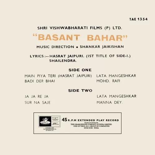 Basant Bahar – TAE 1354 – (Condition 80-85%) – Cover Reprinted – EP Record