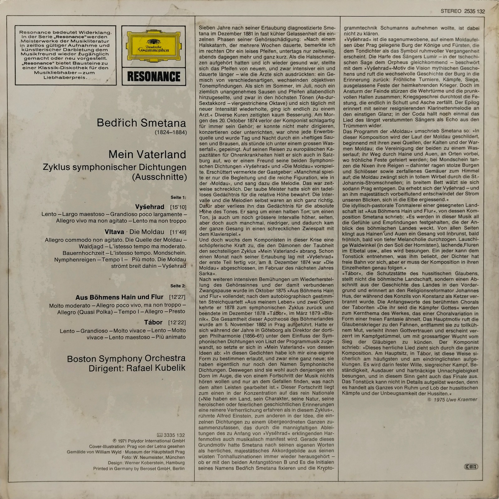 | Side1 - Song2 | Vltava (Die Moldau): Allegro Comodo Non Agitato: Die Erste Quelle Der Moldau — Die Zweite Quelle — Wald; Jagd — L'Istesso Tempo Ma Moderato: Bauernhochzeit — L'Istesso Tempo: Mondschein; Nymphenreigen — Tempo I: St.-Johann-Stromschnellen — Più Moto: Die Moldau Strömt Breit Dahin — Vyšehrad |