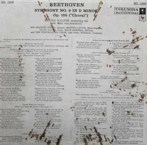 Beethoven – New York Philharmonic – Bruno Walter – Symphony No. 9 In D Minor, Op. 125 (“Choral”) – ML 5200 – (Condition 80-85%) – LP Record