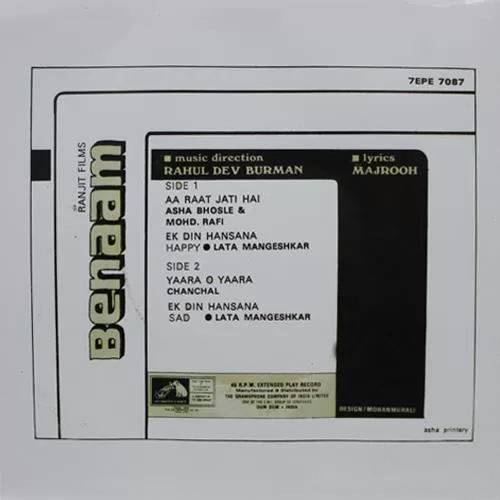Benaam – 7EPE 7087 – (Condition – 85-90%) – Cover Colour Photostate – EP Record