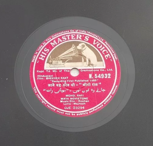 Bheegee Raat – N.54932 – (Condition – 85-90%) – 78 RPM