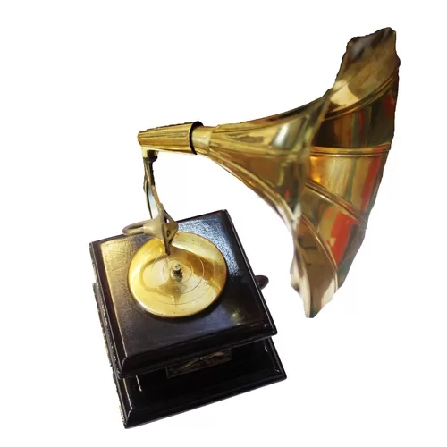 Brass Work Wooden Gramophone – Antique Home Decor – Non Working Only For Decoration