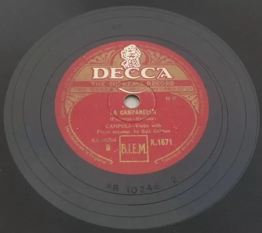 Campoli – Violin With Piano Accompaniment By Eric Gritton – K. 1671 – (Condition 85-90%)- 78 RPM