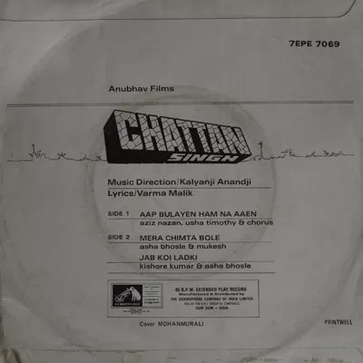 Chattan Singh – 7EPE 7069 – Cover Good Condition – EP Record