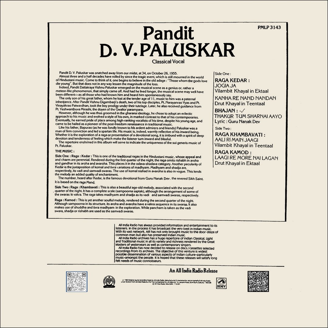 D. V. Paluskar – PMLP 3143 – 90-95% – CR – Indian Classical Vocal LP Vinyl Record