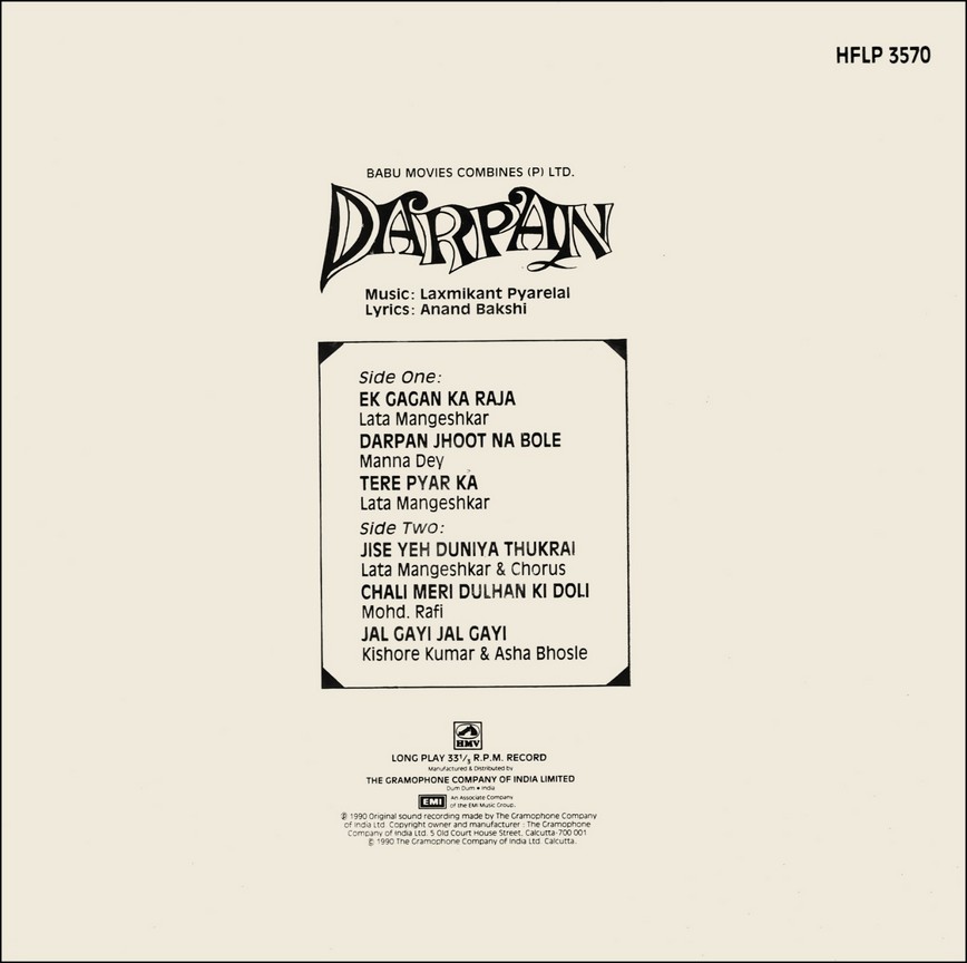 Darpan – HFLP 3570 – (90-95%) – CR – Bollywood LP Vinyl