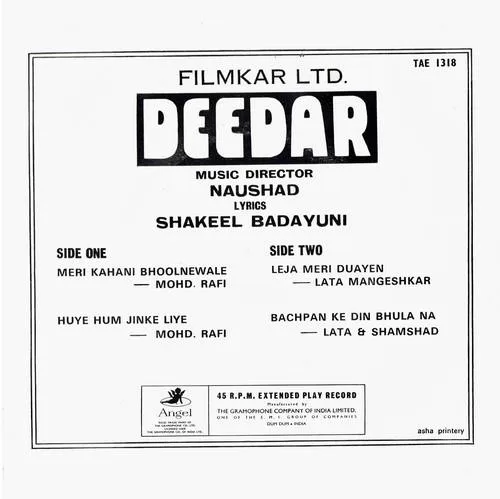 Deedar – TAE 1318 – (Condition 80-85%) – Cover Reprinted – EP Record