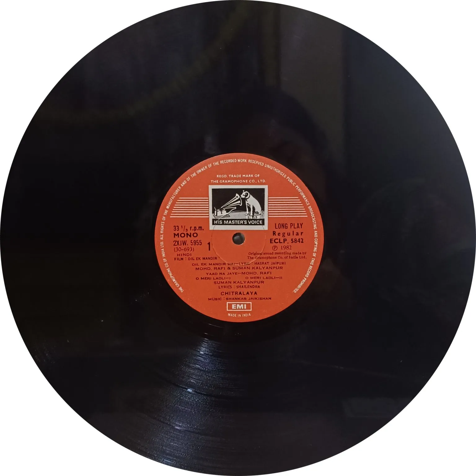 Dil Ek Mandir – ECLP 5842 – Bollywood LP Vinyl Record