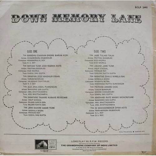 Down Memory Lane – ECLP 2493 – (Condition 85-90%) – HMV Colour Label – LP Record