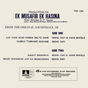 Ek Musafir Ek Hasina – TAE 1100 – (Condition 90-95%) – Cover Reprinted – EP Record