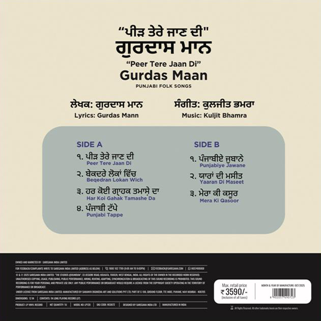 Gurdas Maan – Peer Tere Jaan Di – New Release LP Vinyl