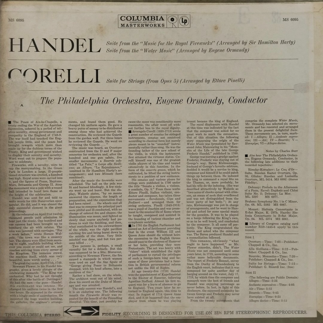 | Handel – The Royal Fireworks – MS 6095 – Western Classical LP Vinyl Record | |