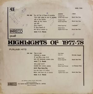 Highlights Of 1977-78 – Punjabi Hits – 2649 7005 – LP Record