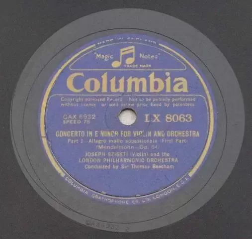 Joseph Szigeti – Violin Solo – LX. 8063 – (Condition 85-90%)