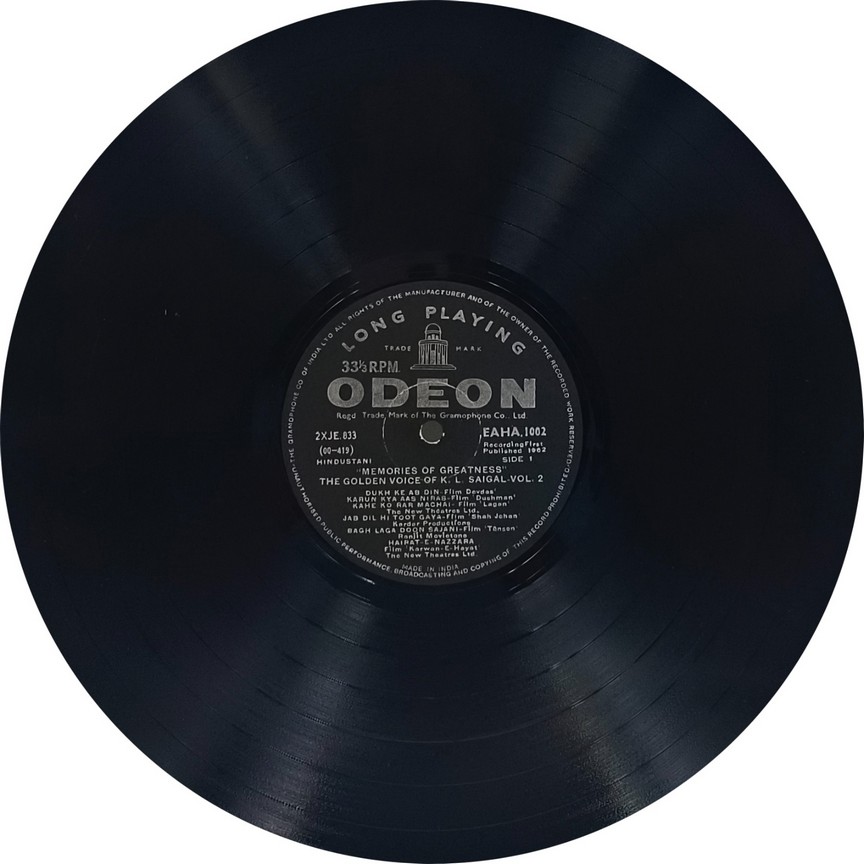 K. L. Saigal – The Golden Voice – Vol.2 – EAHA 1002 – (90-95%) – CR – Film Hits LP Vinyl