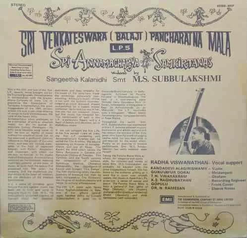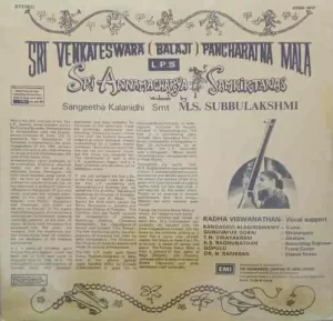 M. S. Subbulakshmi – Sri Venkateswara (Balaji) Pancharatna Mala – LP. 5 – ECSD 3317