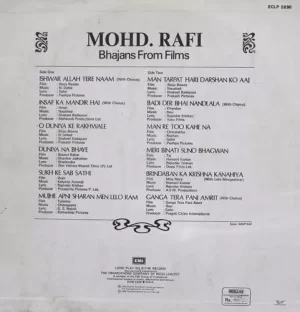 Mohd. Rafi Bhajans From Films – ECLP 5890 – LP Record