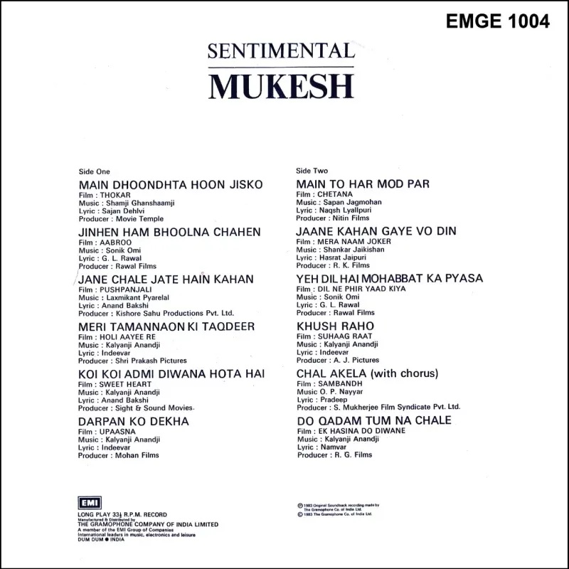| Title | Mukesh (Sentimental) – EMGE 1004 |