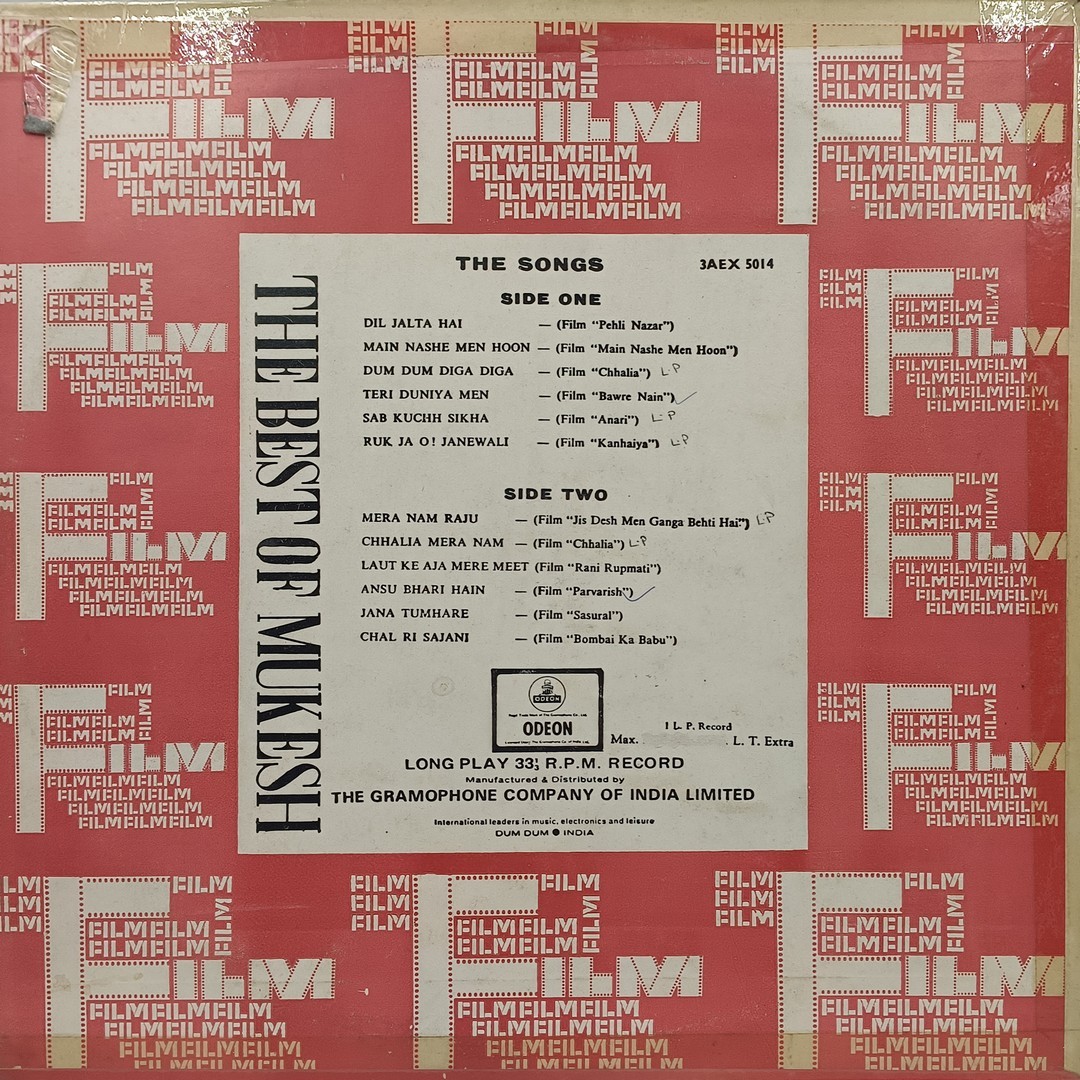 Mukesh – The Best Of – 3AEX 5014 – Film Hits LP Vinyl