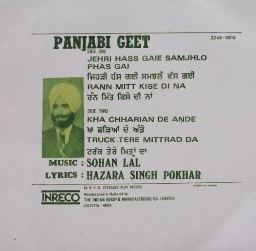 Nasib Singh Nasib And Saroj Simla – Punjabi Geet – 2249 0918 – Reprinted EP Cover Only