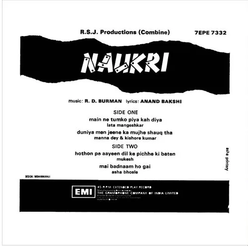 Naukri – 7EPE 7332 – (Condition – 80-85%) – Cover Colour Photostate – EP Record