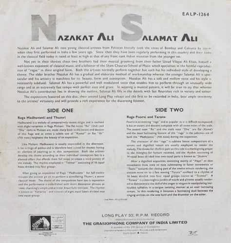 Nazakat Ali & Salamat Ali – EALP 1264 – HMV Colour Label – LP Record