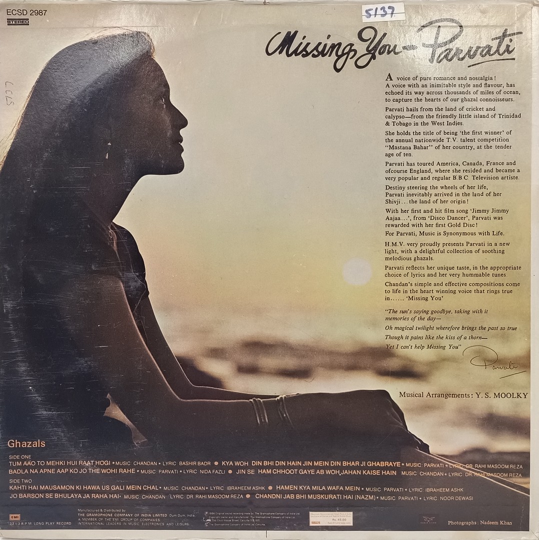| Parvati – Missing You – ECSD 2987 – Ghazals LP Vinyl Record | |