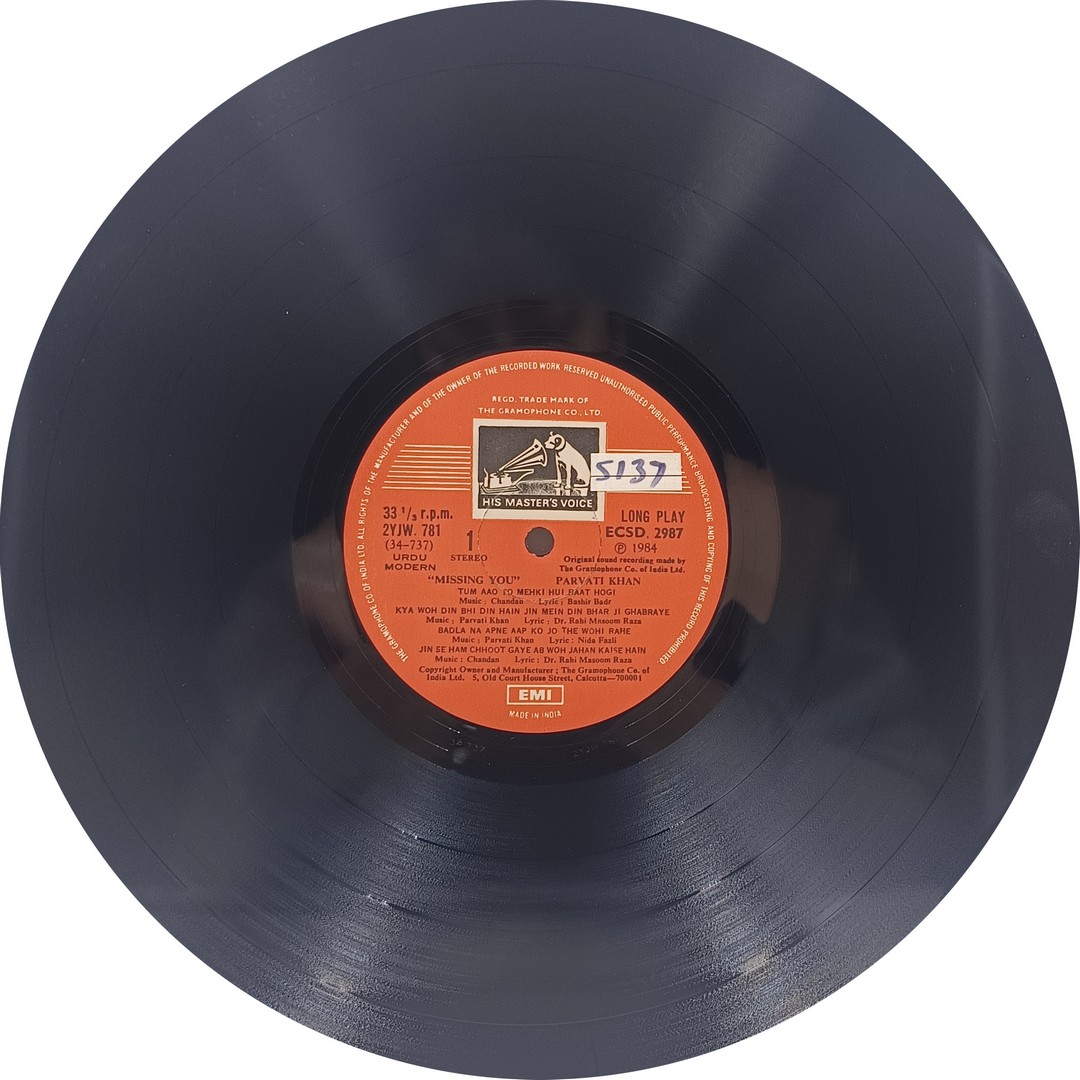 Parvati – Missing You – ECSD 2987 – Ghazals LP Vinyl Record