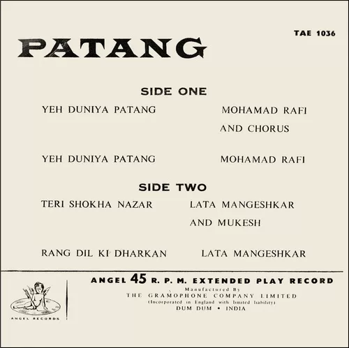 Patang – TAE 1036 – (Condition 85-90%) – Angel – Cover Reprinted – EP Record