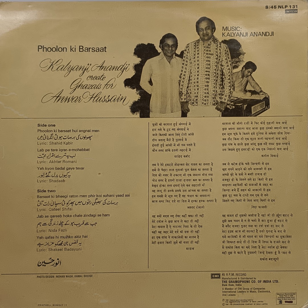 | Phoolon Ki Barsaat – S/45NLP 131 – Ghazals LP Vinyl Record | |