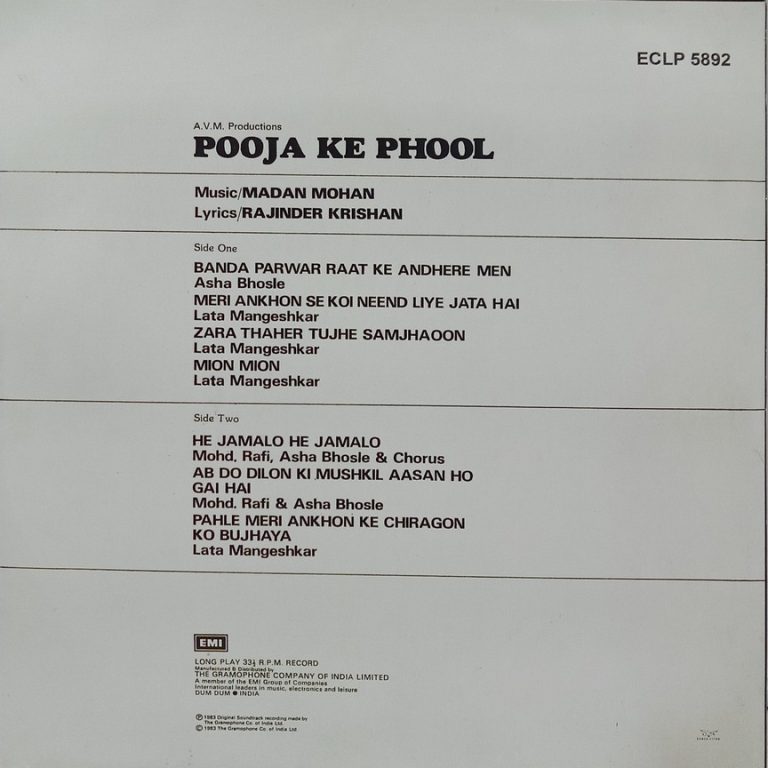 Pooja Ke Phool – ECLP 5892 – (80-85%) – CR – Bollywood LP Vinyl