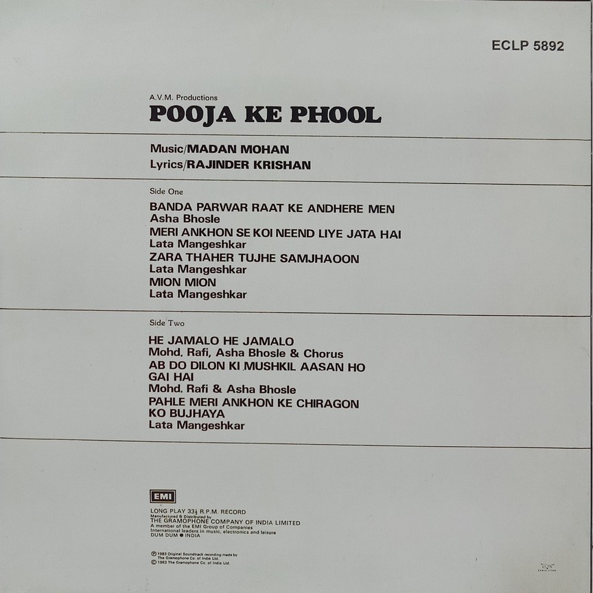 Pooja Ke Phool – ECLP 5892 – (85-90%) – CR – Bollywood LP Vinyl