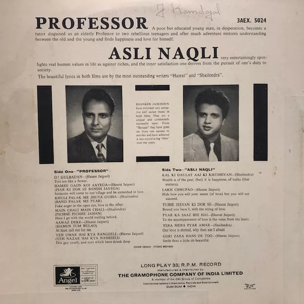 Professor & Asli Naqli – 3AEX 5024 – (90-95%) – Bollywood LP Vinyl