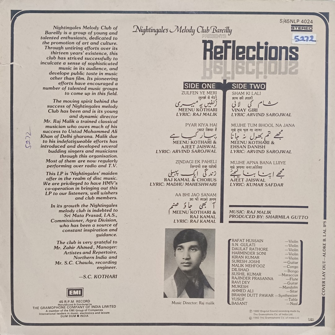 Raj Malik – Reflections – S/45NLP 4024 – Private Songs LP Vinyl Record