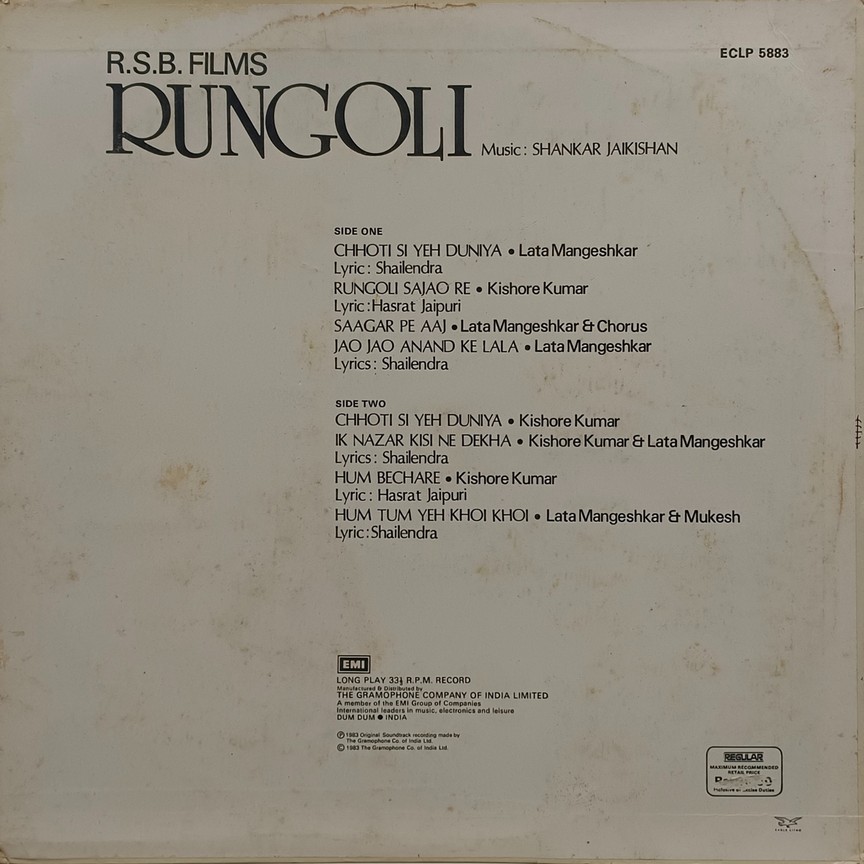 Rungoli – ECLP 5883 – (90-95%) – Bollywood LP Vinyl