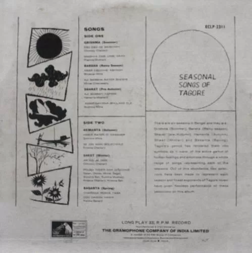 Seasonal Songs Of Tagore – ECLP 2311 – (Condition 85-90%) – LP Record