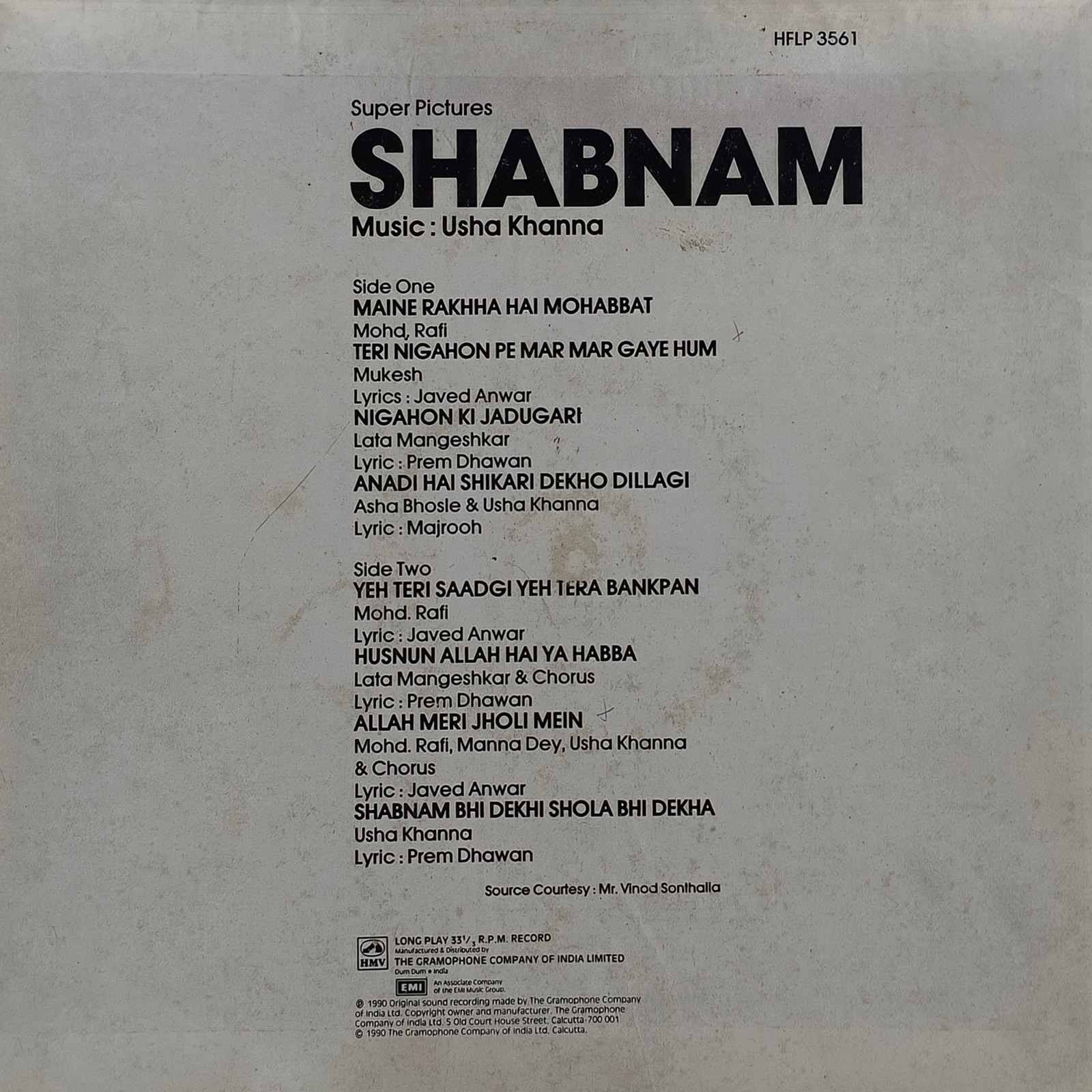 | Shabnam – HFLP 3561 – (Condition 90-95%) – Cover Reprinted – LP Record | |