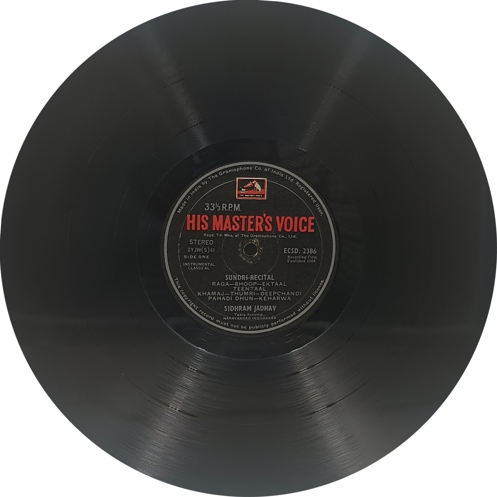| Sidhram Jadhav – ECSD 2386 is a vintage Indian classical music LP album released in 1968 by The Gramophone Company of India (HMV) under the catalog number ECSD 2386. | |
