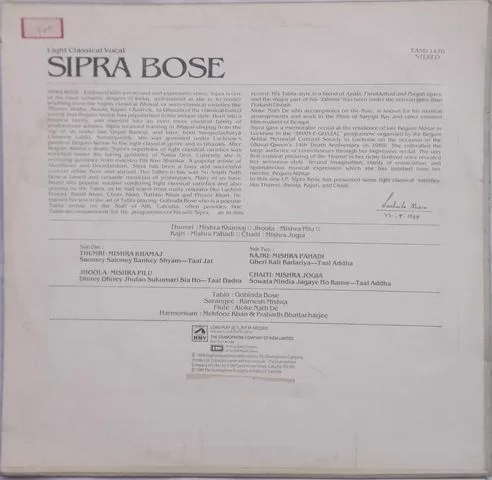 Sipra Bose – Light Classical Vocal – EASD 1470