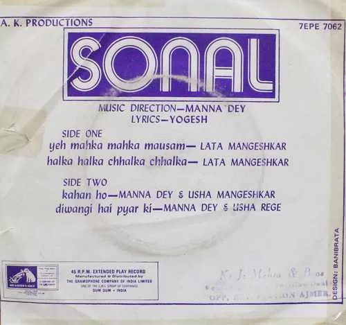 Sonal – 7EPE 7062 – Cover Good Condition – EP Record