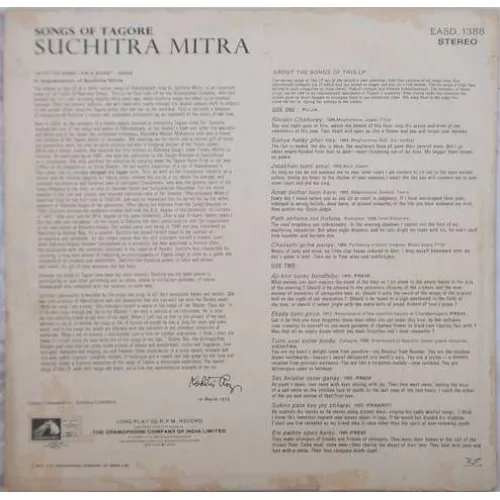 Suchitra MItra – Songs Of Tagore – EASD 1388 (Condition 90-95%) – LP Record