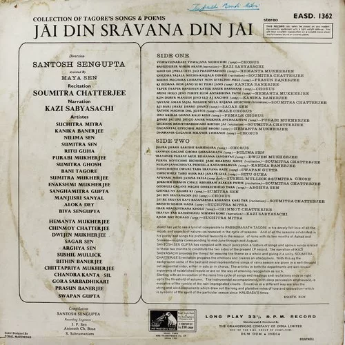 Tagore Songs & Recitations – Jai Din Sravana Din Jai – EASD 1362 – (Condition 85-90%) – HMV Colour Label – LP Record