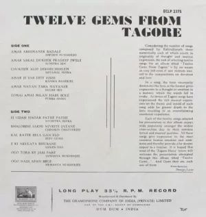 Twelve Gems From Tagore – Bengali Songs – ECLP 2375 – (Condition – 90-95%) – LP Record