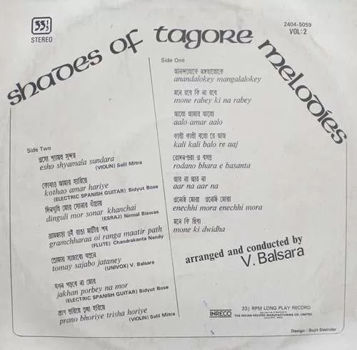 V. Balsara – Shades Of Tagore Melodies – 2404 5059 – LP Record